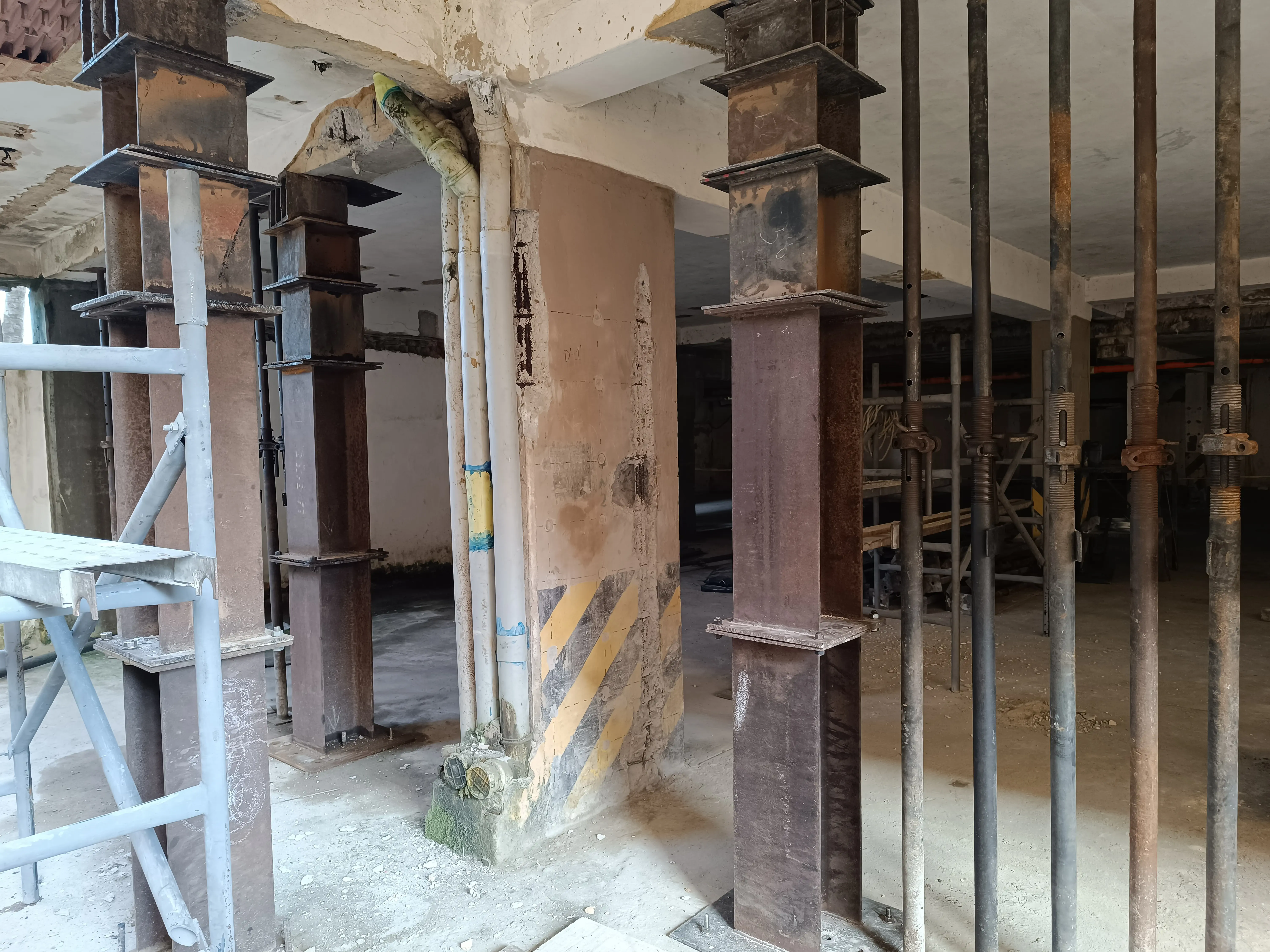 - Ejecución: 22 columnas rehabilitadas integralmente y escaleras de estacionamiento (PB).